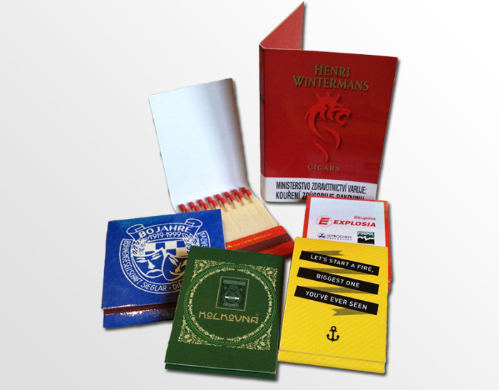 Reklamní zápalkyV naší nabídce najdete nejen klasické krabičky s nálepkami či potiskem nebo standardní hotelové a knížečkové zápalky, ale zabýváme se hlavně ruční výrobou atypických zápalek podle přání zákazníka. Např. knížečkové zápalky různých tvarů podle přání, dále velké krbové zápalky, zápalky ULTRA MINI, v neposlední řadě vyrábíme i zápalky FLIP TOP, zmenšené kopie cigaretových krabiček a mnoho dalších typů.