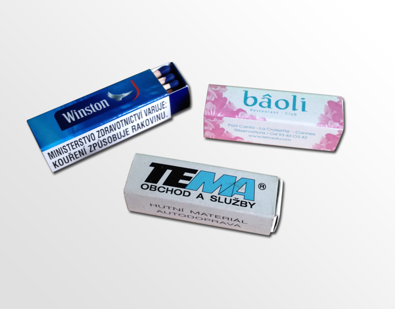Obsah: cca 20 zápalek s přímým potiskem + UV lak, barevné hlavičky na přání